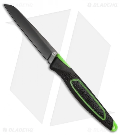 The Freescape Camp Kitchen Kit includes the Freescape Camp Kitchen and Paring Knives, and includes an innovative cutting board that contains a built in ceramic sharpener. A handle for easy carry and a drip channel to keep things clean make the durable polypropylene cutting board an obvious improvement over the second-hand version usually found at camp. It features a drawer that slides in and out with a 3-stop locking system. The two Freescape knives are housed in the drawer and kept in place with magnets. There’s also an extra storage space that can be used to hold anti-bacterial wipes (not included). Its bright green Freescape color makes the Camp Kitchen Kit easy to spot in a gear bag.