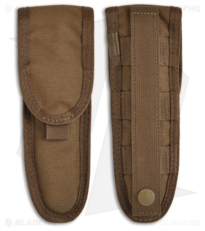 The included sheath has buckled ballistic nylon straps that are fire retardant coated MOLLE compatible design. The plastic sheath includes an integrated knife sharpener so you’re never left with a dull edge.